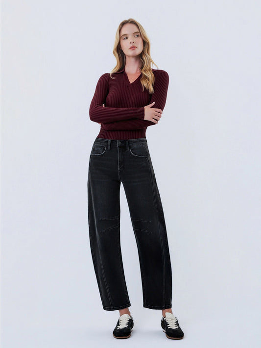 High Rise Black Ankle Barrel Leg