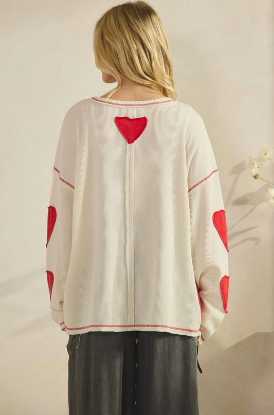 Patch Heart Waffle Pullover