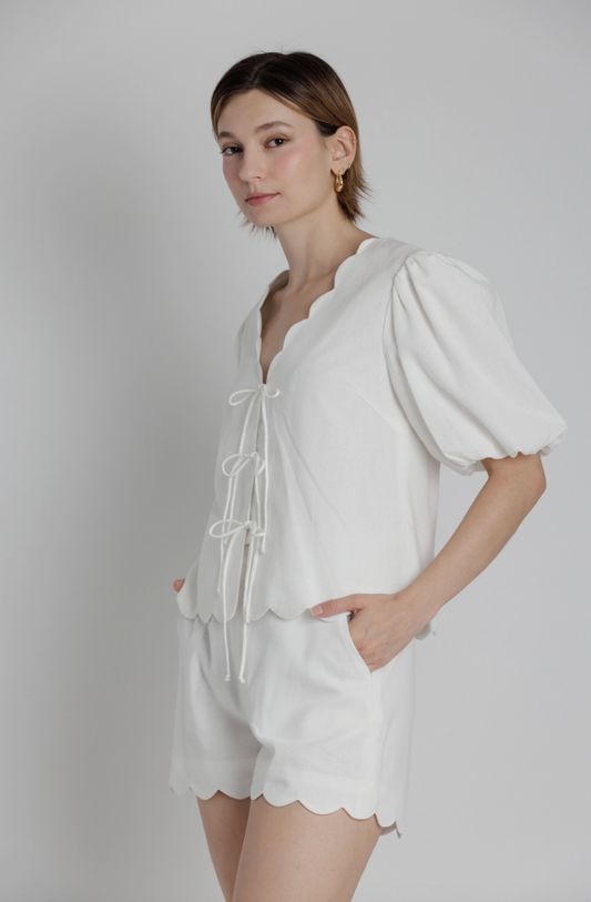 Scallop Hem Blouse w/ Ties