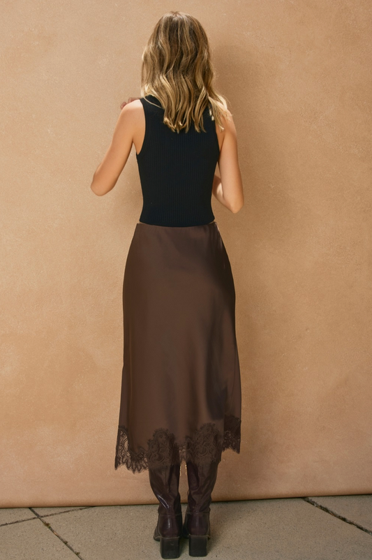 Satin Lace Hem Pencil Skirt