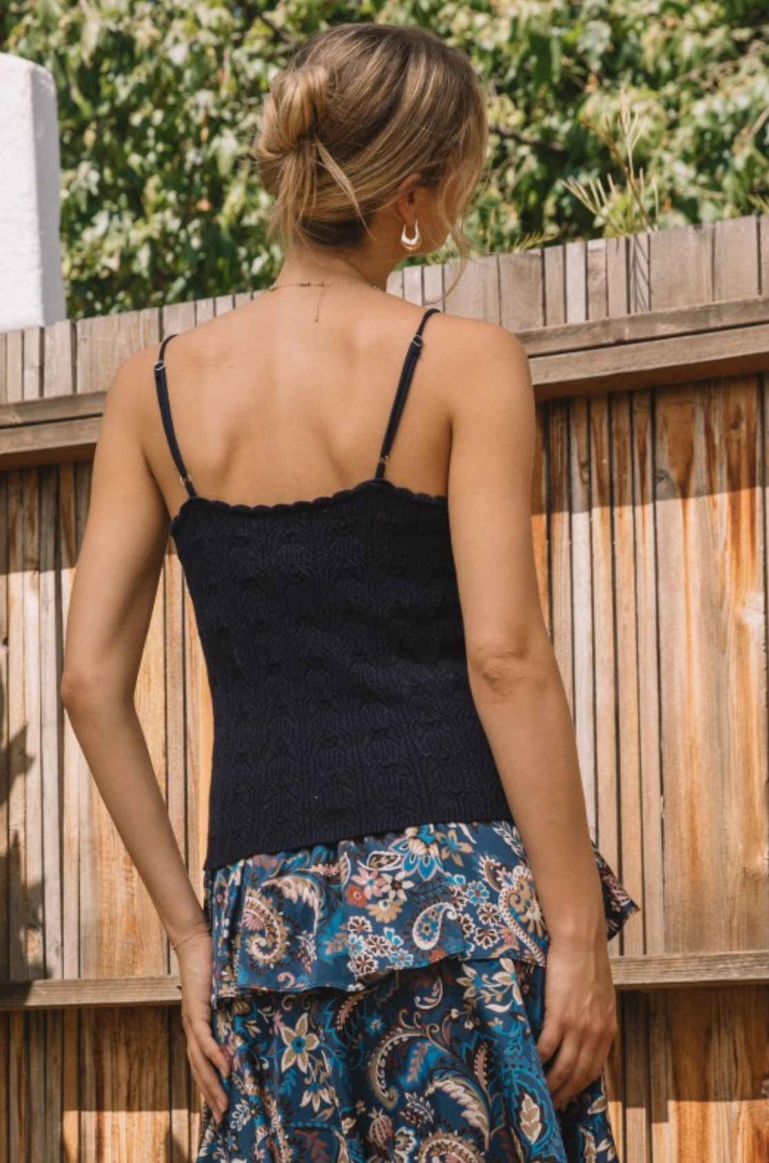 Slip into effortless elegance with this pointelle knit tank that's as comfy as it is cute. The delicate scallop edges add a flirty, feminine vibe, while the breathable fabric keeps you cool whether you're going solo or layering under your favorite blazer. Sleeveless and perfectly fitted, it's your new go-to for everything from lazy Sundays to dressed-up dinners. Pair it with jeans, skirts, or toss it under a cardigan—this versatile piece does it all.