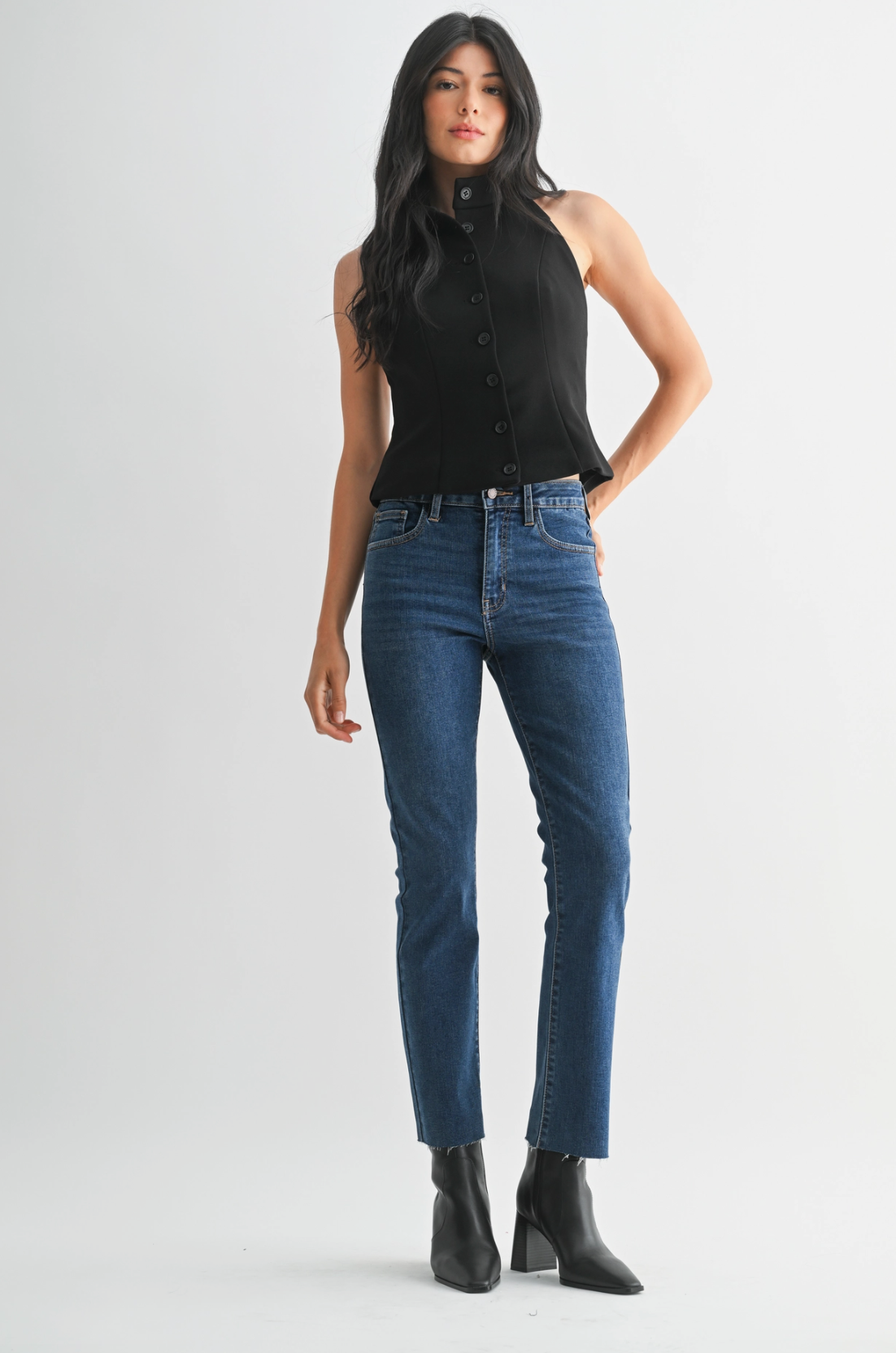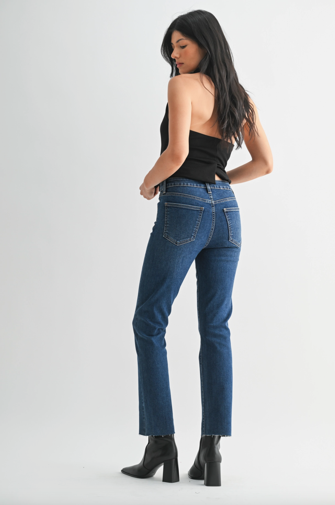 These dark denim Slim Straight Ankle Scissor Cut jeans combine a classic fit with super comfy stretch fabric, making them your go-to for everyday fall and winter vibes. Designed to hug just right without restricting, they offer a playful twist on timeless style—perfect for everything from cozy coffee runs to weekend adventures. Get ready to rock that effortless cool with comfort that keeps up with your day!