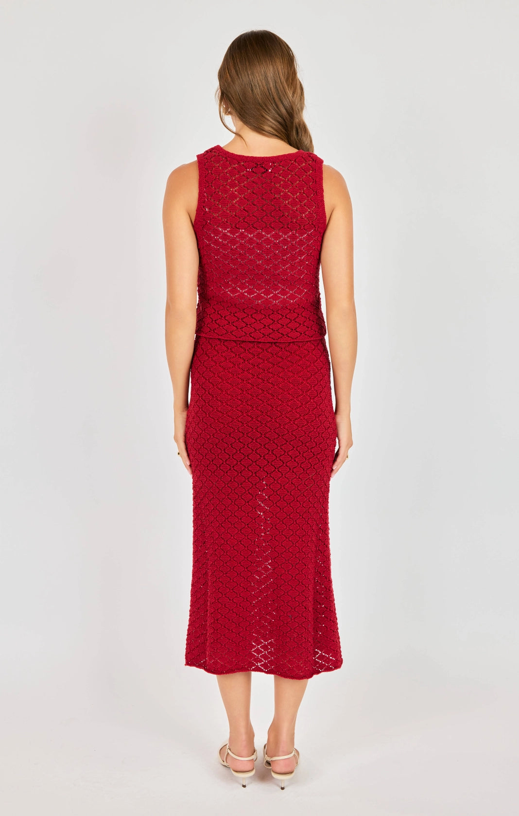 Slip into summer style with this darling desert red crochet vest that's ready for all your warm-weather celebrations. The open-weave design keeps you cool while adding instant texture and charm to any outfit. Wear it solo over a simple tee, pair it with the matching skirt for a coordinated set, or layer it over linen pants for an effortlessly chic summer look. Versatile, breezy, and endlessly fun—your new go-to piece for every season ahead.
